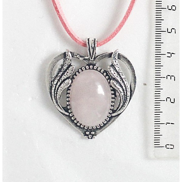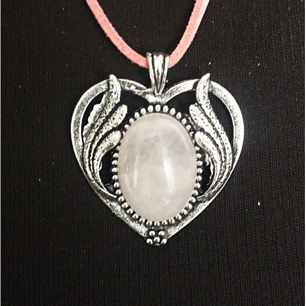 Кулон из кварца розового, овал 25х18мм, оправа "сердце с крыльями"