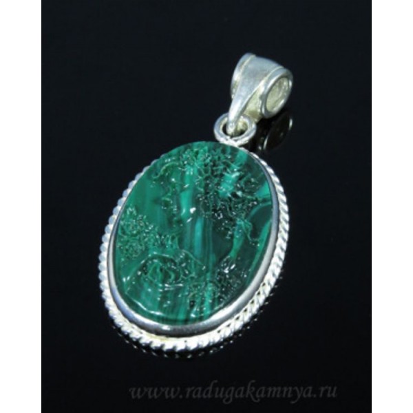 Кулон из крафтовой смолы "камея", цвет зеленый, "лист", цвет ант. серебро, овал 25х18мм