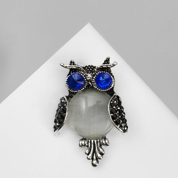Брошь "Сова" блестящая, цвет синий, цвет серебрист..