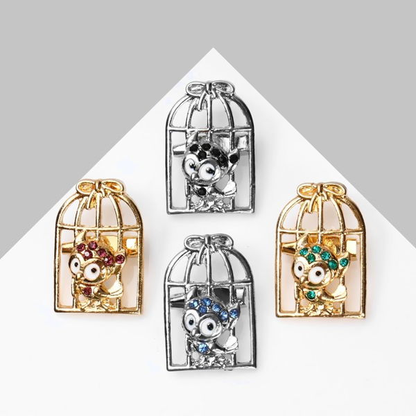 Брошь "Птица" сова в клетке, цвет МИКС