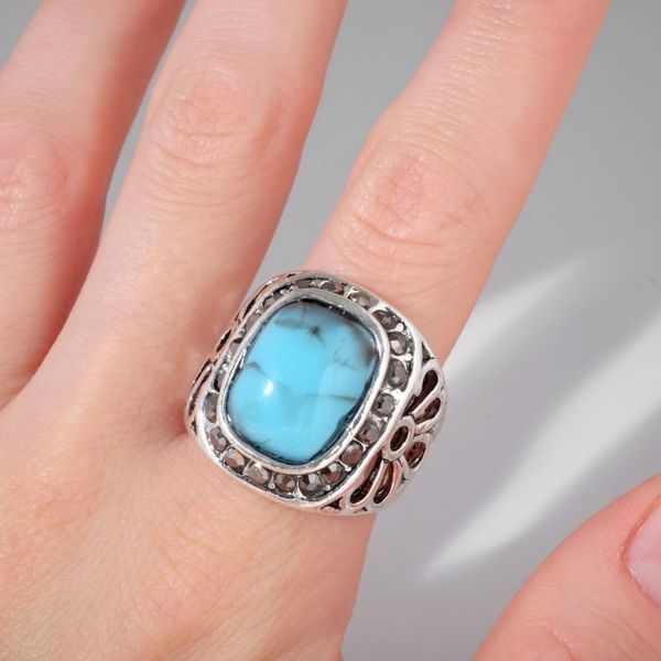 Кольцо женское с бирюзой (имитация) "Звезда"