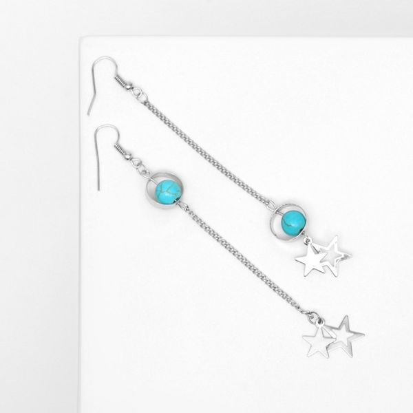 Серьги "Звёзды" бирюза, цвет голубой, цвет серебристый