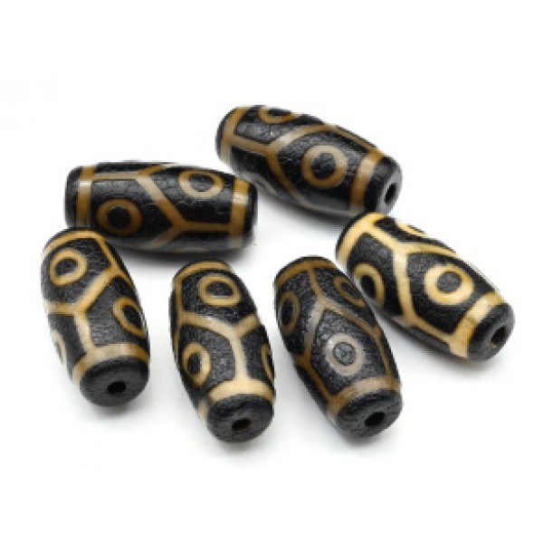 Бусины Дзи "Шесть глаз" из агата бочонок 10*30мм, ..