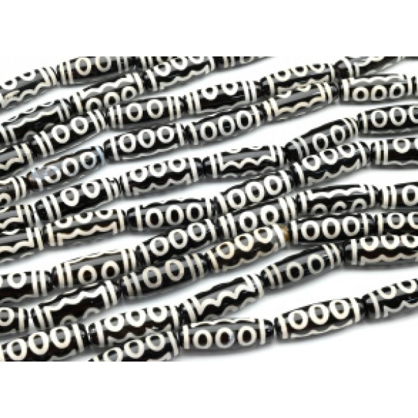 Бусины Дзи "Одиннадцать глаз" из агата бочонок 10*30мм, цвет черный, 1 бусина