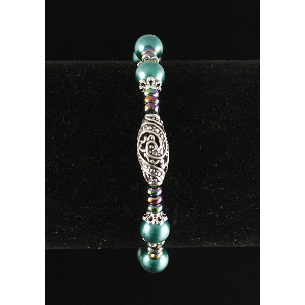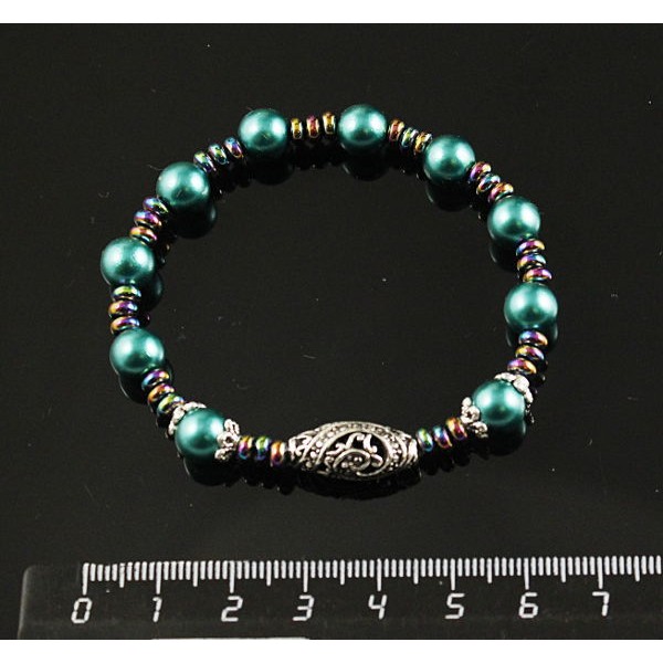 Браслет гематит тонир. рондель, майорка шарик 8мм, бусина ажурная 18мм