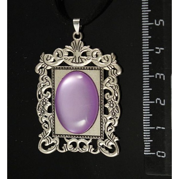 Кулон пластик сиреневый (эффект опала) "портрет", овал 25х18мм