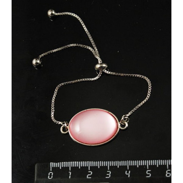 Браслет пластик розовый (эффект опала), овал 25х18мм, силиконовый стоппер