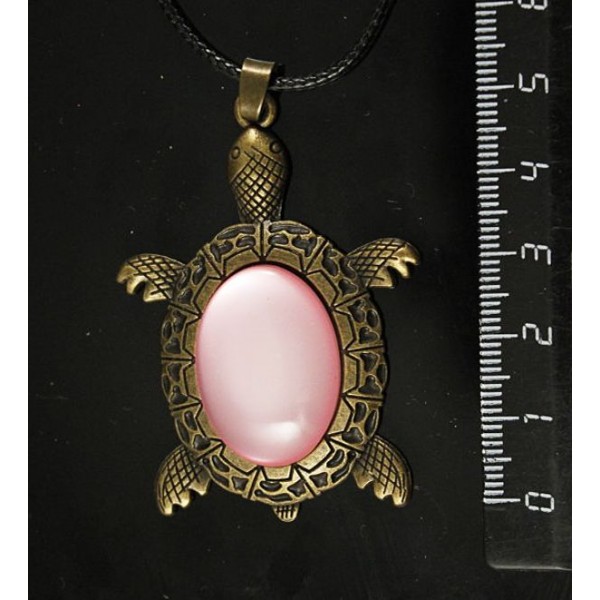 Кулон пластик розовый (эффект опала) "черепаха", овал 25х18мм, цвет бронза