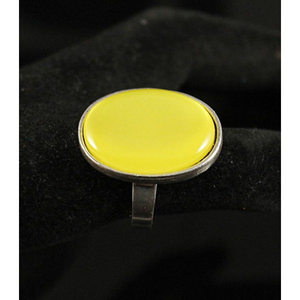 Кольцо пластик желтый (эффект опала), овал 25х18мм, безразмерное (литая оправа)