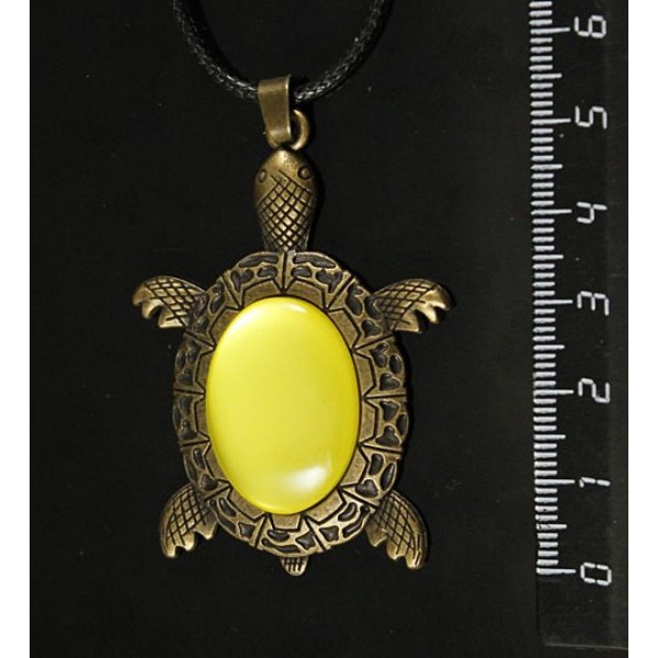Кулон пластик желтый (эффект опала) "черепаха", овал 25х18мм, цвет бронза