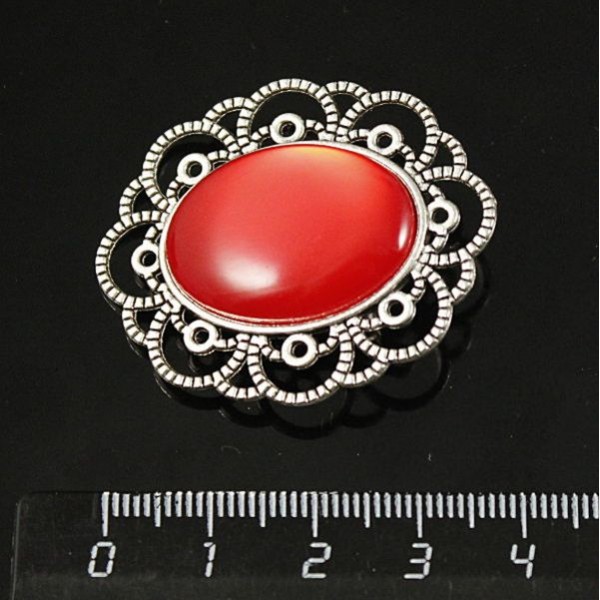 Брошь из авантюрина красного (синт.), овал 25х18мм..