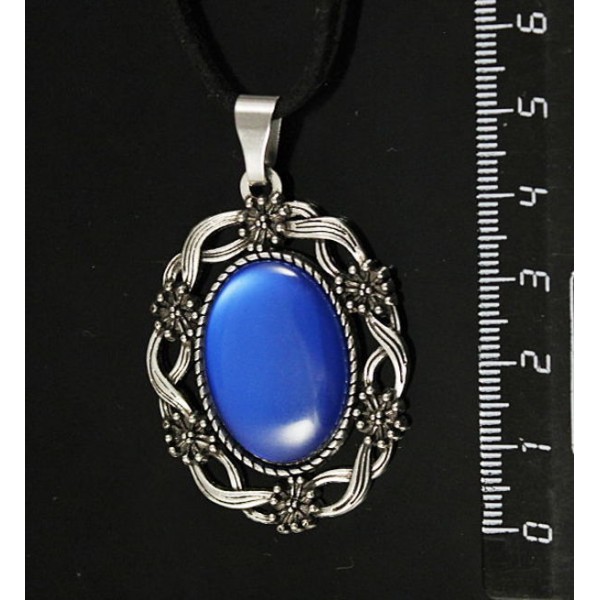 Кулон из кошачьего глаза (синт.), овал 25х18мм, цвет синий лавандовый, оправа "торжество"
