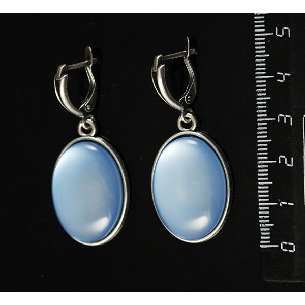 Серьги из кошачьего глаза (синт.), цвет синий лавандовый, простой овал 25х18мм, швензы посеребрение