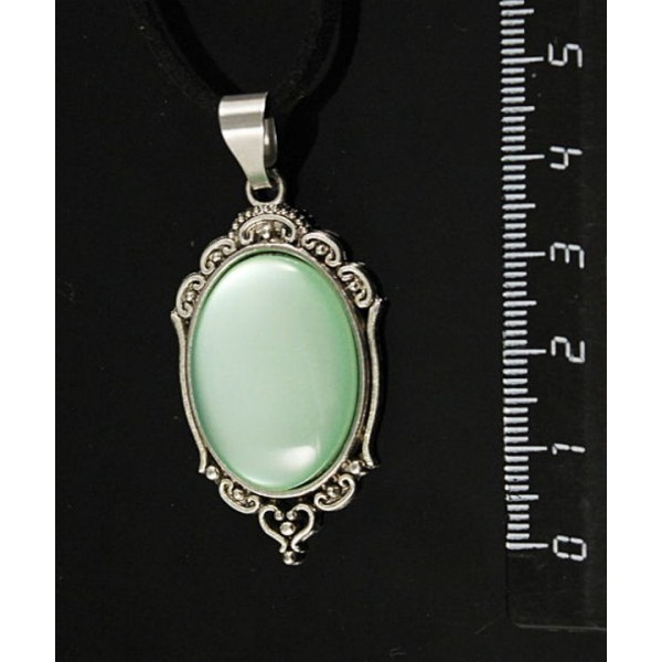 Кулон пластик мятный (эффект опала) "медальон", овал 25х18мм