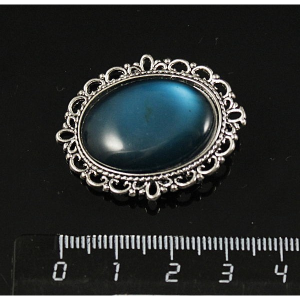 Брошь из крафтовой смолы, цвет голубой, кабошон "камея", с ажурным контуром, цвет ант. серебро, овал 25х18мм
