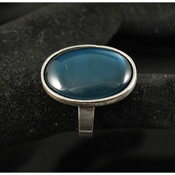 Кольцо с агатом синим (тонировка), овал 25х18мм, безразмерное (литая оправа)