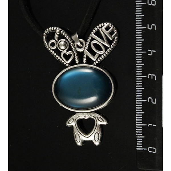 Кулон пластик синий (эффект опала) "зайчик", овал 25х18мм