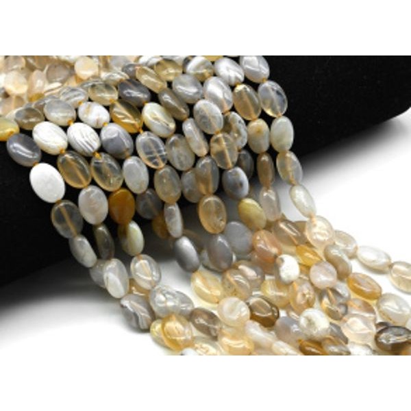 Нитка агат серо-коричневый (Ботсвана), мятый овал ..