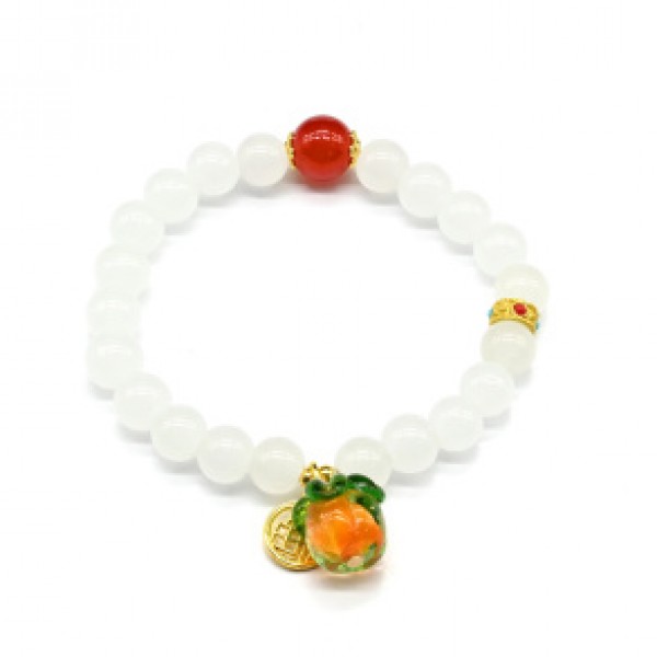 Браслет из кварца Тыковка шарик 8мм цвет белый (иск.)