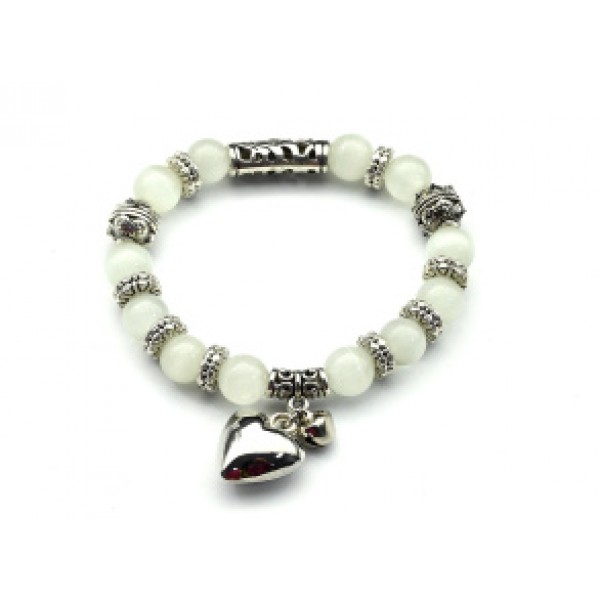 Браслет из кошачьего глаза (синт.) (синт.) шарик 10мм белый с Кулонами (иск.)
