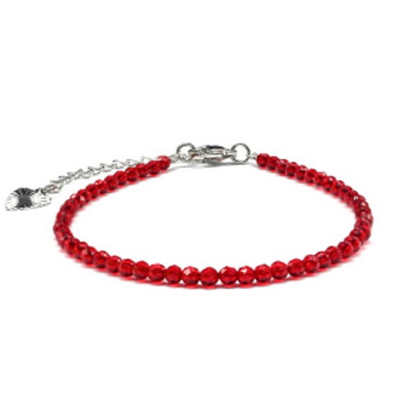 • Браслет из циркона шарик гр.3мм цвет красный, 17см (иск.)