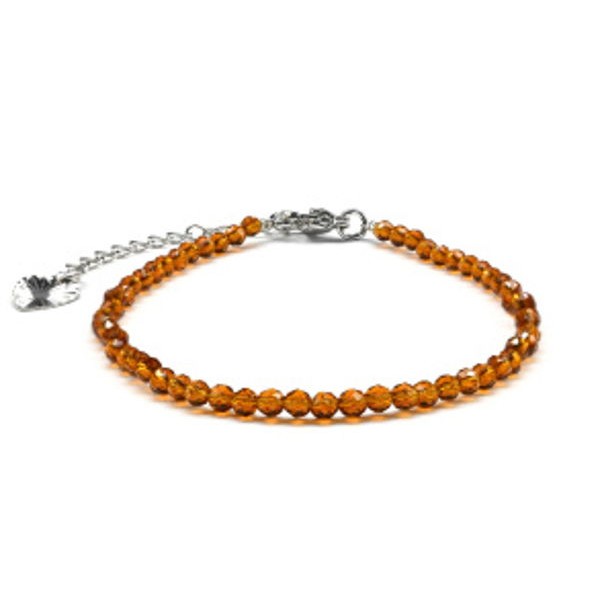 Браслет из циркона шарик гр.3мм цвет коньячный, 17см (иск.)