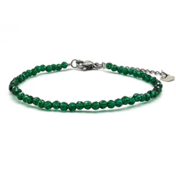 Браслет из циркона шарик гр.3мм цвет зеленый, 17см (иск.)
