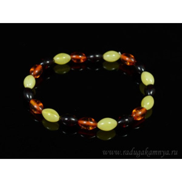 Браслет из янтаря рис 5*9мм молочный, коньячный, вишня (иск.)