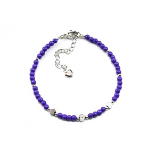 Браслет из бисера "Сердечки" шарик 3мм цвет фиолетовый, 17см (иск.)