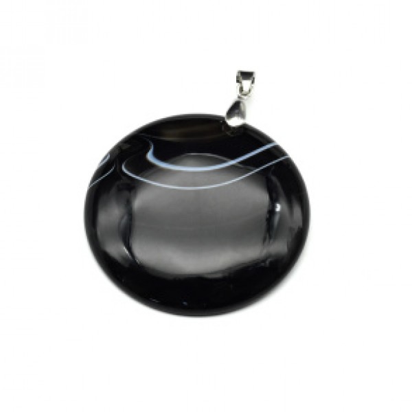 Кулон из агата черного, круг 12мм, оправа "балерина"