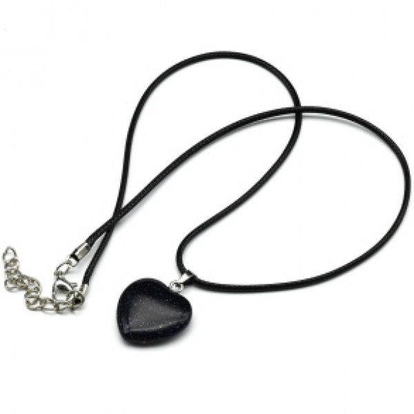 Кулон на шею из авантюрина синего Сердце 20*22мм на шнурке, 45см (иск.)