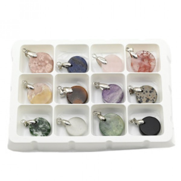 Набор кулонов Круг 12 шутк из самоцветов, 13-20мм