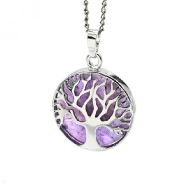 Кулон Дерево двусторонний в металле с аметистом 27*27мм