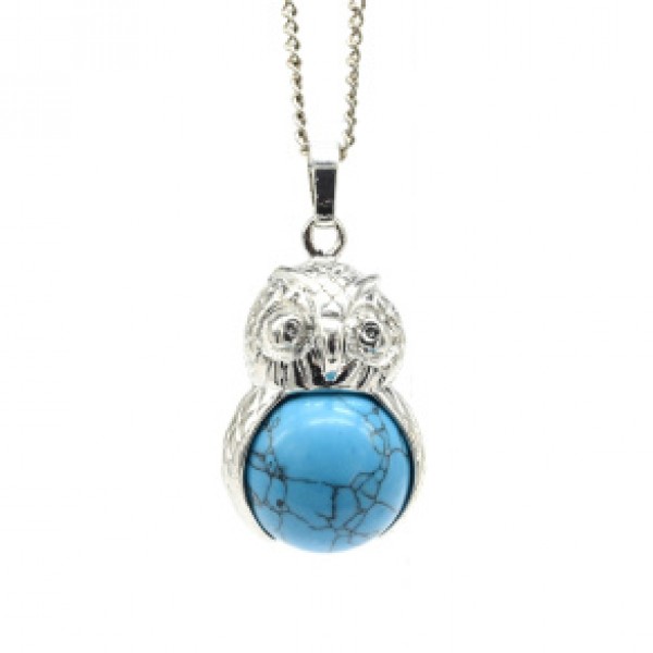 Кулон женский Сова с бирюзой искусственной в металле 18*26мм
