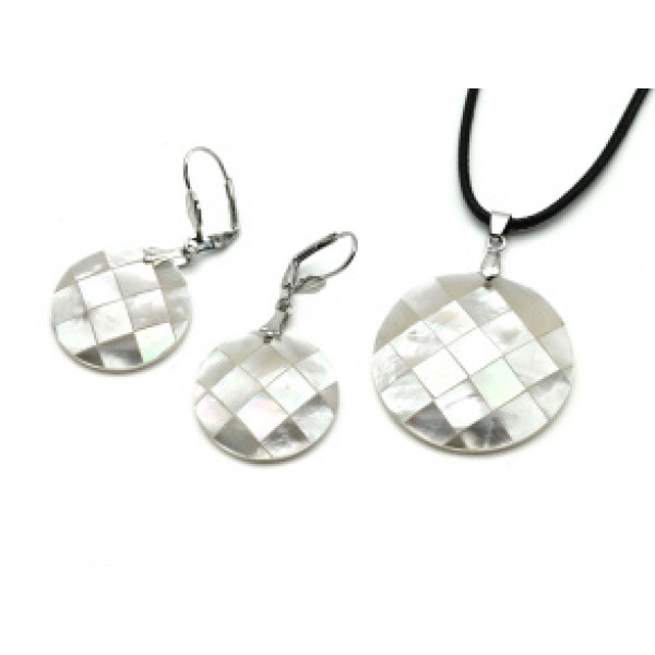 • Набор из перламутра Кулон, серьги круг 25мм цвет белый, 44см