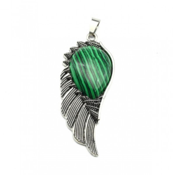 Кулон Крыло Ангела 16*47мм с малахитом искусственным (иск.)