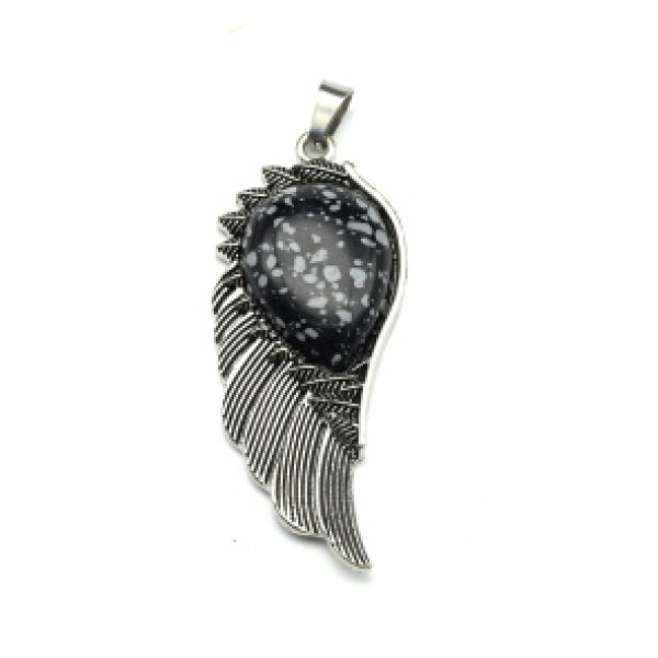 Кулон Крыло Ангела 16*47мм с обсидианом снежным