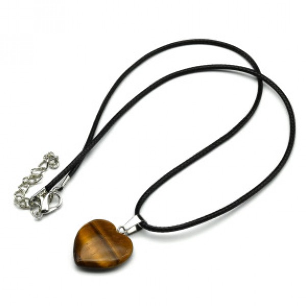 • Кулон на шею из тигрового глаза на шнурке Сердце 20*22мм, 45см