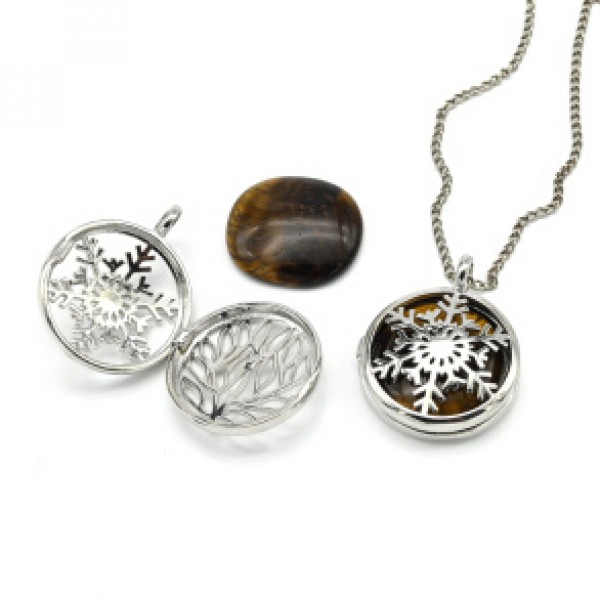 Кулон открывающийся Снежинка 25*25мм с тигровым глазом