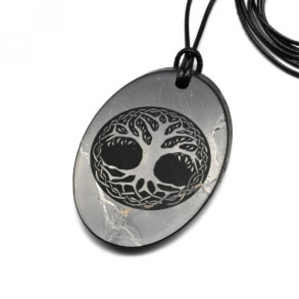Кулон из шунгита овал "Дерево жизни" 32*51мм, полированный