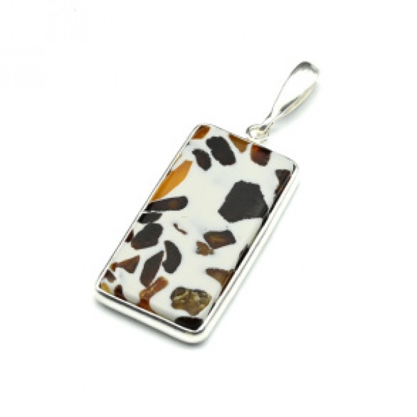 Кулон с янтарём мозаика в посеребрении прямоугольник 17*31мм