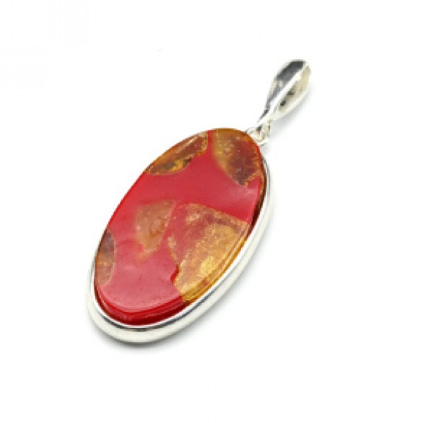 Кулон с янтарём мозаика в посеребрении овал 17*31мм цвет красный