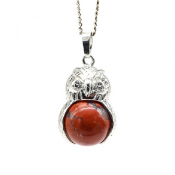 Кулон женский Сова с яшмой красной в металле 18*26мм