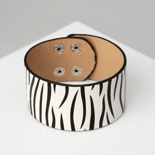 Браслет кожа "Сафари" зебра, широкий, цвет чёрно-белый, 23,5 см