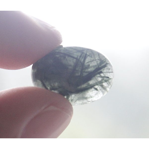 Кварц-волосатик темный, зеленые волосы, кабошон овал 18х13мм