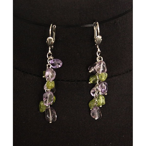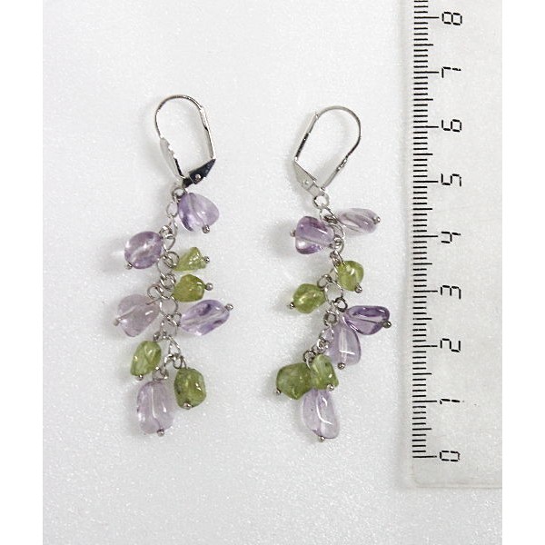 Серьги из аметиста и хризолита, овалы, на цепочке