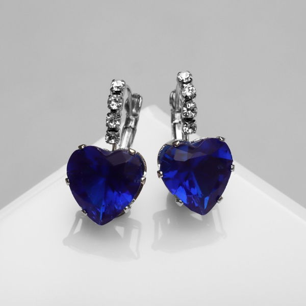 Серьги со стразами "Сердце" мерцание, цвет синий, цвет серебристый