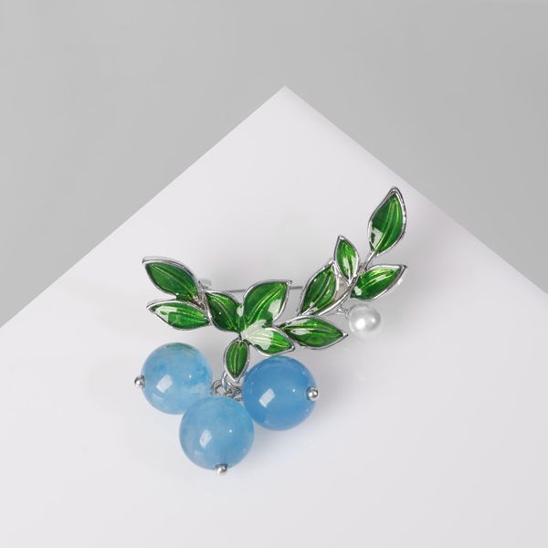 Брошь «Ягоды» агат, цвет зелёно-голубой, цвет серебристый