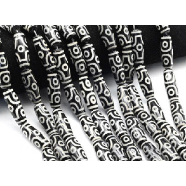 Бусины Дзи "Шесть глаз" из агата бочонок 10*30мм, цвет черный, 1 бусина