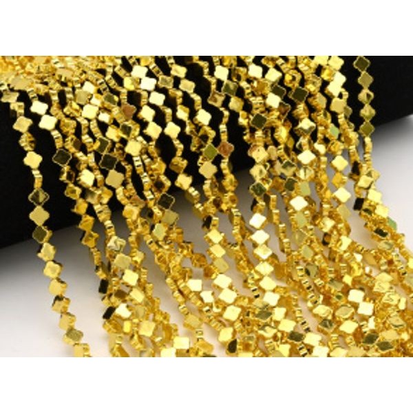 Бусины из гематита Клевер 6*6мм цвет золотой, 39см, 64 бусины